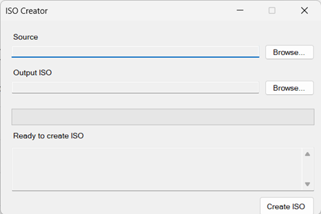 So as a proof of concept, I started out with building a console app. It relied on the DiscUtils.Iso9660 package to handle ISO creation. It received two parameters: (1) the folder containing the files to include in the image, and (2) the location and filename of the resulting image.